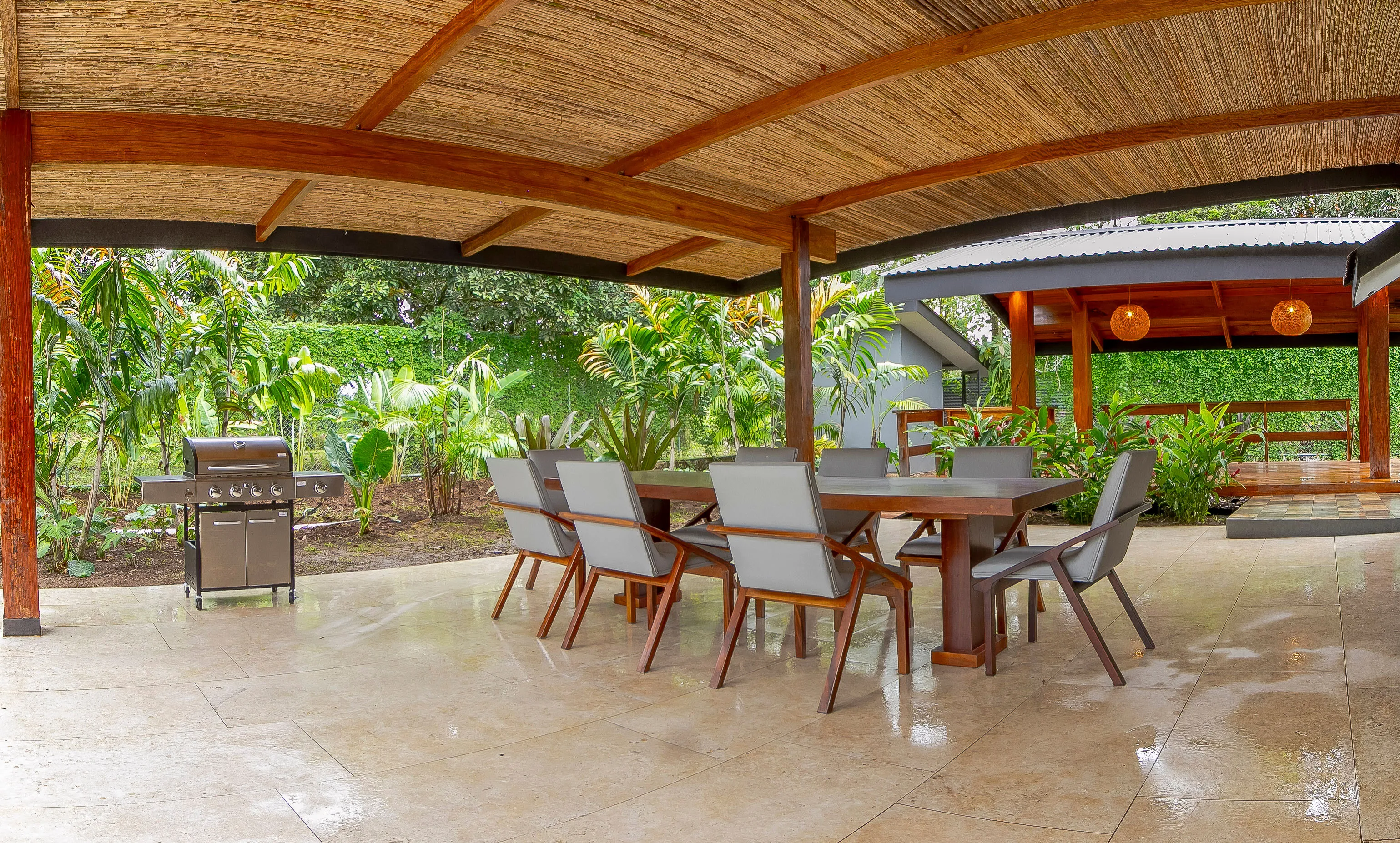 The expansive terrace is perfect for leisurely breakfasts, afternoon barbecues, or dinners with garden views. Daily breakfast is complimentary and served at the *Colibrí Restaurant, located on the hotel grounds. Guests receive one complimentary guided rainforest nature tour and can join complimentary yoga classes every Tuesday, Thursday, and Saturday at the hotel.