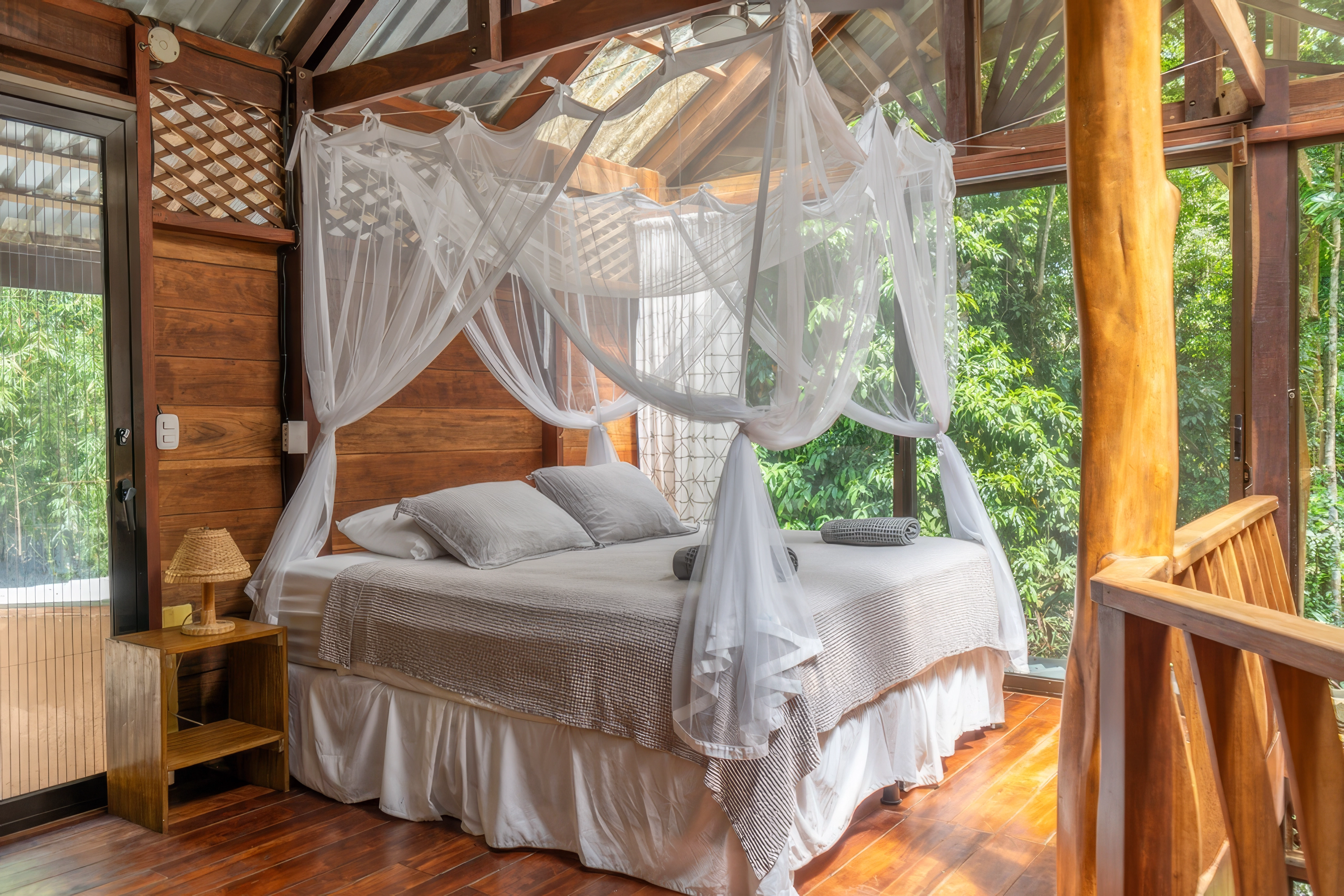 Nestled just 200 meters from the water in Playa Chiquita, Up House is a beautifully crafted residence built from rich black laurel hardwood. The home is an homage to local culture, decorated with authentic Bribri artwork and indigo textiles, offering a "barefoot luxury" feel with premium 400-thread-count linens.