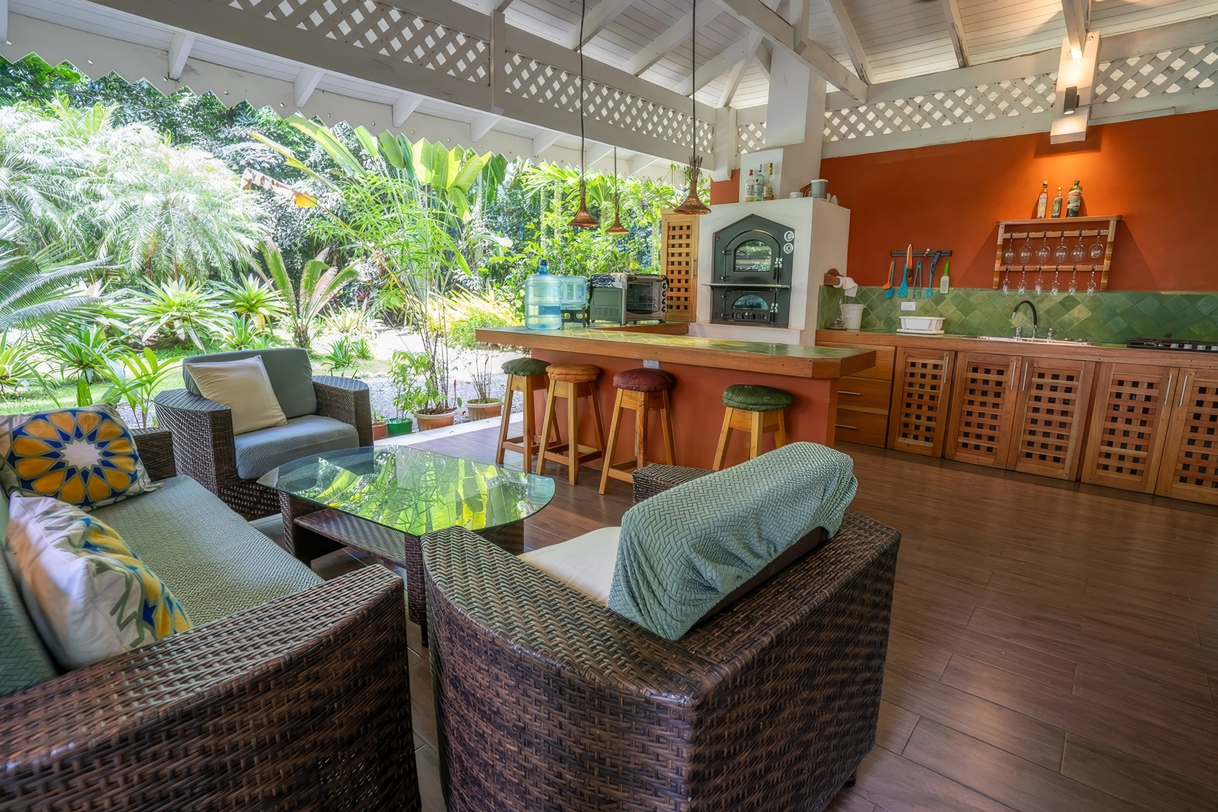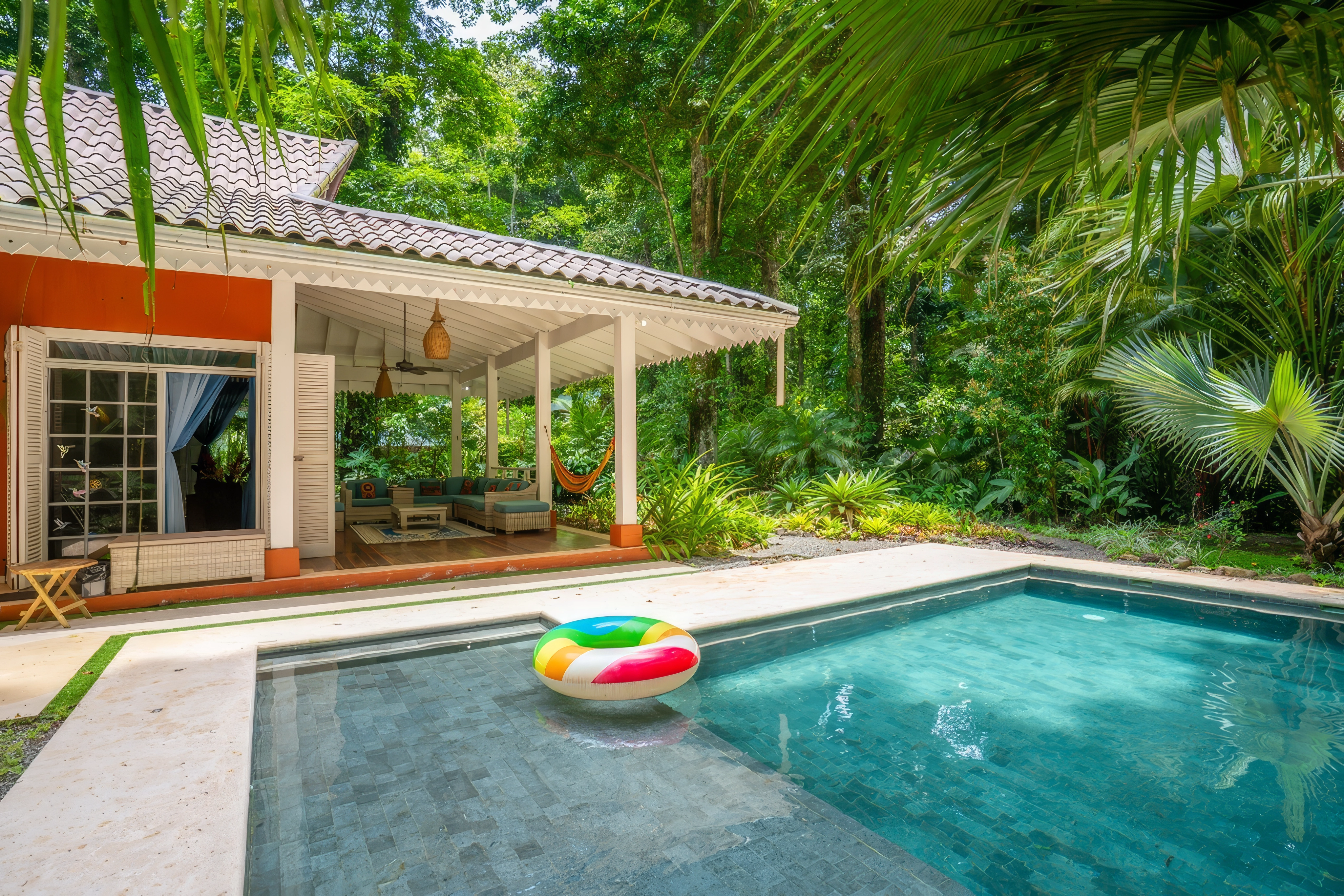 Villa Oasis (locally known as El Oasis) is a grand, 3,000 sq. ft. beachfront estate sitting on 2.5 acres of wild jungle. Renovated in 2022, this home is defined by its vibrant Costa Rican cement tiles and its unparalleled proximity to the water—boasting 45 meters of private beachfront.
