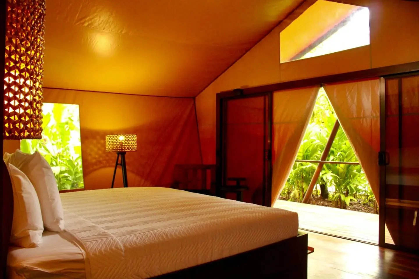 The accommodations at Tocu redefine "tent camp." Each of the 20 luxurious, over 50-square-meter canvas tents is a masterpiece of sustainable design, crafted by local Costa Rican artisans. They seamlessly blend sophisticated comfort with harmony for the natural surroundings.