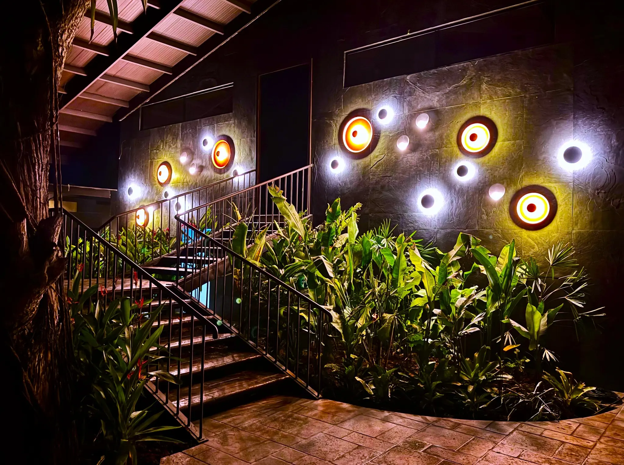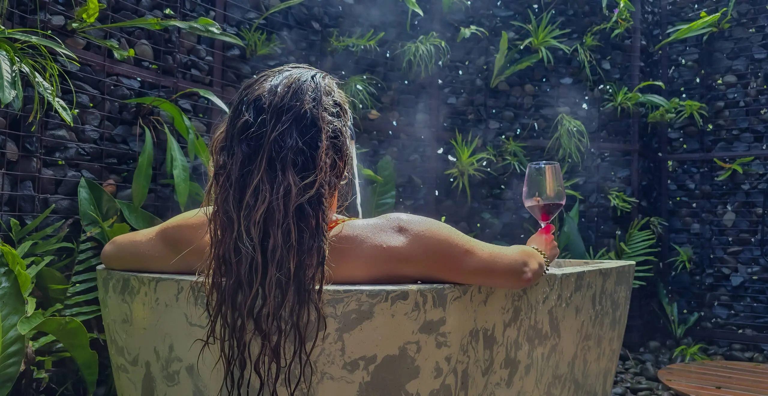 - Private Outdoor Sanctuary: The front terrace overlooks lush tropical gardens, perfect for relaxing and birdwatching. The private back garden features an opulent double-sink bathroom, a unique rainforest shower, an outdoor soaking tub, and a cozy nest hammock—a personal paradise for privacy and indulgence.